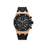 The watch comes on a black rubber strap with rose gold AP pin buckle.