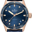 5000-36S40-O52A Blancpain The Blancpain Fifty Fathoms 5000-36S40-O52A Men's Watch features a 43mm 18kt rose gold case with a blue canvas strap. The uni-directional rotating bezel is also made of 18kt rose gold and has a blue ceramic ring. The blue dial has luminous rose gold-tone hands and dot hour markers, with minute markers around the outer rim. The watch is water-resistant up to 30 meters or 100 feet. The watch has a luminescent dial with hands and markers that make it easy to read the time even in low-light conditions. The date display is located between the 4 and 5 o'clock positions. The watch is powered by the Blancpain calibre 1315 automatic movement, which is composed of 227 parts and has 35 jewels. It also has a power reserve of approximately 120 hours. The watch has a screw-down crown and a transparent case back. The watch has a round case shape with a case size of 43mm and a case thickness of 13.4mm. The band width measures 23mm and has a tang clasp. The watch has a scratch-resistant sapphire crystal. Overall, this Blancpain Fifty Fathoms watch is a luxurious timepiece that combines style and function. The blue canvas strap and blue ceramic ring on the bezel complement the rose gold case and luminous hands and markers. Although the water resistance is lower compared to other dive watches, it still offers a level of protection for everyday use.
