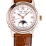masterpiece of haute horology. This watch comes with 34 mm 18K Rose Gold case. Fixed 18K Rose Gold bezel. Mother-of-pearl dial. Rose gold leaf-shaped hour hands. Rose gold Roman numerals and diamonds hour markers. Roman numerals appear at the 3, 9 and 12 o’clock positions. Date display on the outer ring. Sub-dial of small seconds and moon phase is located at 6 o’clock position. Day & Month Windows displayed beneath the 12 o'clock position. The watch performs following functions: hours, minutes, seconds, date, moon phase, day & month. Self-winding mechanical movement is powered by a ?alibre 6763. 30 Jewels. Power reserve approximately 100 hours. Case Thickness - 8.5 mm. Case back is solid. Sapphire crystal protects front side of the watch. Alligator leather strap with gold clasp buckle. This model is water-resistant up to 30 m. Don’t miss your chance to own this exquisite timepiece. Click 'Order Now' to make it yours, or give us a call to discuss this stunning watch.