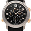 Preowned-2041-12A30-64B Blancpain This watch has a 40 mm Titanium case. Fixed Titanium bezel. The fluted rose gold crown. Black dial with gold-tone skeletonsed sword-shaped hands and Arabic numerals hour marks. Luminescent hands and hour marks. Arabic numerals appear at the 3, 9 and 12 o’clock positions. Date display between 4 and 5 o'clock position. Four sub-dials displaying: 60 second, 12 hour, power reserve indicator and alarm. 24 hours second time zone sub-dial is located at the 9 o'clock position. The watch performs following functions: hours, minutes,date, small seconds,30-minute counter and 12-hour counter, time zone, power reserve indicator and alarm. Self-winding mechanical movement is powered by a ?alibre 1241G. Power reserve approximately 40 hours.Case Thickness – 13,3 mm. Case back is transparent .Sapphire crystal protects front and back side of the watch. Black leather strap with pin clasp.Water resistant at 100 meters.