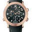 Preowned - 2041B-3630-64B Blancpain Leman. This Men's watch has 40 mm 18K Rose Gold case with fixed bezel. Black dial with gold-tone skeleton sword-shaped hands and Arabic numerals hour marks. Luminescent hands and hour marks. Date display between 4 and 5 o'clock position. Four sub-dials displaying: 60 second, 12 hour, power reserve indicator and alarm. 24 hours second time zone sub-dial is located at the 9 o'clock position. The watch performs following functions: hours, minutes,date, small seconds,30-minute counter and 12-hour counter, time zone, power reserve indicator and alarm. Self-winding mechanical movement is powered by a ?alibre 1241G. Power reserve approximately 40 hours.Case Thickness – 13,3 mm. Case back is transparent .Sapphire crystal protects front and back side of the watch. Black alligator leather strap with deployment clasp.Water resistant at 100 meters.
