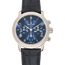 Preowned-6885-1540-55 Blancpain This watch has 38 mm 18K White Gold case. Fixed 18K White Gold bezel. Blue dial with silver-tone hands and Roman numerals hour markers. Date display at the 6 o'clock position. Chronograph - sub-dials displaying: 30 minutes, and 12 hours. Automatic movement with about 40 hours of power reserve. Alligator leather black strap with tang buckle. Scratch resistant sapphire crystal. Functions: flyback chronograph, date, hour, minute, second. Water resistant at 30 meters / 100 feet.