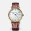 Classique wristwatch in 18-carat yellow gold. Self-winding movement with date. Balance spring, lever and escape wheel in silicon. White 'grand feu' enamel dial with Breguet Arabic numerals and Secret signature. Sapphire case back. Water-resistant to 3 bar ( 30 m ). Diameter : 38 mm. Also in rose or white gold. Available with gold bracelet. Available with silvered gold dial.