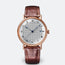 Classique wristwatch in 18-carat rose gold. Self-winding movement with date. Balance spring, lever and escape wheel in silicon. Silvered gold dial hand-engraved on a rose engine. Sapphire case back. Water-resistant to 3 bar ( 30 m ). Diameter : 38 mm. Also in yellow or white gold. Available with gold bracelet. Available with white 'grand feu' enamel dial, Breguet Arabic numerals and Secret signature.