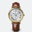Classique wristwatch in 18-carat yellow gold. Self-winding movement. Retrograding seconds subdial and power-reserve indicator. Off-centred chapter ring. Silvered gold dial, hand-engraved on a rose engine. Sapphire caseback. Water-resistant to 3 bar ( 30 m ). Diameter : 39 mm. Also in white gold. Available with gold bracelet.