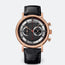 Classique chronograph in 18-carat rose gold. Hand-wound movement with double seconds and 30-minute totalizer. Tachometric scale surrounding the chapter ring. Black rhodium-plated gold dial, hand-engraved on a rose engine. Sapphire case back. Water-resistant to 3 bar ( 30 m ). Diameter : 42.5 mm. Also in white gold. Available with silvered gold dial.