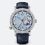 Classique ''Hora Mundi'' wristwatch in platinum. Self-winding movement. Instant jump time-zone display with synchronized date day/night indication and city. Balance spring, lever and escape wheel in silicon. Dial depicting the Europe-Africa continent set with 154 diamonds totalling approx. 0.399 ct with ''Wave'' motif coated with translucent lacquer. Chapter ring paved with 76 baguette cut diamonds, approx. 2.01cts, and with 83 baguette-cut sapphires totalling approx. 1.98 cts. Bezel, dial flange and lugs set with 130 baguette-cut diamonds totalling approx. 17.32cts. Sapphire case back. Water-resistant to 3 bar (30m). Diameter : 46 mm. Available with America or Asia-Oceania dial.