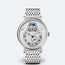 Classique wristwatch in 18-carat white gold. Self-winding movement showing the date, the day and the phases and age of the moon. Balance spring and lever in silicon. Seconds subdial. Off-centred chapter ring. Silvered gold dial, hand-engraved on a rose engine. Sapphire caseback. Water-resistant to 3 bar ( 30 m ). Diameter : 39 mm. Also in rose or yellow gold.