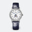 Classique wristwatch in 18-carat white gold with a delicately fluted caseband. Bezel and lugs set with 66 brilliant-cut diamonds (approx. 1.04 cts). Dial in 'grand feu' enamel. Individually numbered and signed Breguet. Hours chapter with Arabic numerals. Moon-phase indicator with small seconds at 6 o'clock. Breguet open-tipped hands in blued steel. Self-winding movement, numbered and signed Breguet. Cal. 537L. 8 1/2 lignes. 26 jewels. 45 hours power reserve. In-line Swiss lever escapement in silicon. Silicon balance-spring. Balance frequency 3.5Hz. Adjusted in 6 positions. Sapphire-crystal caseback. Water-resistant to 3 bar (30m). Diameter: 30mm. Leather strap. Also in 18-carat rose gold.