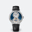 Classique 'Grande Complication' wristwatch in 18-carat white gold, with tourbillon. Hand-wound movement. Running seconds on the tourbillon shaft. Compensating balance spring with Breguet overcoil. Bezel and lugs set with 74 diamonds, approx. 1.33 cts . Gold dial hand-engraved on a rose engine with translucent blue enamel coating. Breguet Arabic numerals. Sapphire caseback. Water-resistant to 3 bar ( 30 m ). Diameter : 35 mm. Also with gold dial hand-engraved on a rose engine with mother-of-pearl dial or translucent red enamel coating.