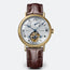 Classique 'Grande Complication' wristwatch in 18-carat yellow gold with tourbillon. Self-winding movement engraved by hand. 5-day power-reserve indicator. Running seconds on the tourbillon shaft. Compensating balance spring with Breguet overcoil. Silvered gold dial, hand-engraved on a rose engine. Sapphire caseback. Water-resistant to 3 bar ( 30 m ). Diameter : 39 mm. Also in rose gold and platinum. Available with gold or platinum bracelet.