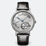Extra-thin 3 mm self-winding movement, calibre 581DR, 16 lines, 42 jewels. Tourbillon in a titanium carriage. Inverted lateral lever escapement with silicon horns. Silicon balance spring. Frequency 4 Hz. Barrel mounted on roller bearings. Peripheral platinum rotor. 80-hour power reserve. Small seconds on the tourbillon axis. Ultra-thin 7mm case in platinum. Silvered gold dial adorned with four different engine-turned patterns executed by hand : clou de Paris hobnail, barleycorn, straight chevrons and cross hatching. Sapphire caseback. Water-resistant to 3 bar ( 30m ). Diameter: 42mm. Also in rose gold.