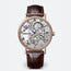Classique 'Grande Complication' openworked extra-thin wristwatch with tourbillon in 18-carat rose gold. Self-winding movement with peripheral oscillating weight. Balance spring and escape wheel in silicon. Chapter ring with Roman numerals on a sapphire disc. Running seconds on the tourbillon shaft. Sapphire caseback. Water-resistant to 3 bar (30m). Diameter: 41 mm. Also available in platinum.