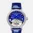 3358BB/VD/986/D0 Breguet This watch comes with 35 mm 18K White Gold case. Fixed 18K White Gold bezel set with 69 diamonds (~1.84cts) . Crown set with a rose-cut diamond, approx.. 0.3ct. Blue pearled mother-of-pearl dial decorated with 21 gold stars including 6 set with a diamond, approx. 0.06ct. Off-center hour and minute display with Breguet Arabic numerals. Silvery hour hands. Tourbillon located at the 6 o'clock position. The tourbillon bridge is set with 45 diamonds, approx. 0.07 carats. The watch performs following functions: hours, minutes, tourbillon. Hand-winding movement is powered by a ?alibre 187D. 21 Jewels. Power reserve approximately 50 hours. Case Thickness - 9.43 mm. Case back is transparent. Sapphire crystal protects front and back side of the watch. Alligator strap with a triple blade folding clasp in gold set with 42 diamonds, approx. 0.24ct.. This model is water-resistant up to 30 m.