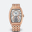 Heritage 'Grande Complication' wristwatch in 18-carat rose gold with tourbillon. Curved tonneau shaped case. Hand-wound movement engraved by hand. Small seconds on the tourbillon shaft. Compensating balance spring with Breguet overcoil. Silvered gold dial, hand-engraved on a rose engine. Partial sapphire caseback. Water-resistant to 3 bar ( 30 m ). Dimensions : 42 x 35 mm. Also in platinum.