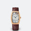 Heritage wristwatch in 18-carat rose gold. Curved tonneau-shaped case. Self-winding movement. Retrograde moon-phase indicator. Balance-spring in silicon. Cambered frosted silvered and natural mother-of-pearl dial, hand-engraved on a rose engine. Water-resistant to 3 bar ( 30 m ). Dimensions : 35 x 25 mm. Also in white gold. Available on gold bracelet.