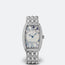 Heritage wristwatch in 18-carat white gold. Curved tonneau-shaped case. Bezel set with 140 diamonds approx. 1.14 cts. Self-winding movement. Retrograde moon-phase indicator. Balance-spring in silicon. Cambered frosted silvered and natural mother-of-pearl dial, hand-engraved on a rose engine. Water-resistant to 3 bar ( 30 m ). Dimensions : 35 x 25 mm. Also in rose gold.