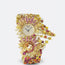 L'Orangerie wristwatch in 18-carat yellow gold. Snow-set dial paved with 141 diamonds totalling approx. 0.52 ct. Dial flange paved with 48 diamonds, approx. 0.10 ct. Bracelet set with 152 diamonds, approx. 10.70 cts, 142 spessartine garnets, approx. 7.13 cts, 146 rubies, approx. 1.39 cts, 14 spinels, approx. 0.58 ct, 58 yellow sapphires, approx. 0.61ct, 71 pink tourmalines, approx. 10.23 cts, 25 yellow beryls, approx. 3.48 cts. Self-winding movement. Balance spring in silicon. Sapphire caseback. Diameter : 17 mm.