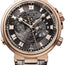 5547BR/G3/9ZU Breguet The Breguet Marine 5547 Marine Alarme Musicale 5547BR/G3/9ZU is a luxury men's watch that boasts a 40 mm 18K Rose Gold case with a brushed and polished finish. The bezel is also made of 18K Rose gold and has a brushed finish. The brown dial features a fine brushed finished chapter ring and a hand-engraved wave pattern center, which is a signature design element of the Breguet Marine collection. The dial also features applied solid Roman Numeral hour markers with luminous fill, making it easy to read in any lighting conditions. The watch comes with a brown alligator leather strap, which adds to the elegance and sophistication of the watch's overall design. The strap is comfortable to wear and is suitable for formal occasions. The watch is powered by an automatic movement and uses Breguet caliber 519F/1, which is known for its accuracy and reliability. The watch has several functions, including an alarm, GMT Time Zone, date, hours, minutes, and seconds, making it a versatile timepiece for everyday wear. The Breguet Marine 5547 Marine Alarme Musicale 5547BR/G3/9ZU has a water resistance rating of up to 100 meters or 330 feet, which makes it suitable for swimming and snorkeling, but not for scuba diving. The watch also features a screw-locked crown and a sapphire case back, adding to its durability and robustness. Overall, the Breguet Marine 5547 Marine Alarme Musicale 5547BR/G3/9ZU is a luxurious timepiece that combines elegance, functionality, and durability, making it a perfect choice for those who appreciate fine watches with a classic and timeless design.