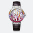 Marine High Jewellery wristwatch in 18-carat white gold set with 270 gems weighing approx. 10 carats. Ruby version with combination of rubies, coloured sapphires and diamonds (~9.97cts). Self-winding movement. White mother-of-pearl dial. Sapphire caseback with oscillating weight decorated with Tahitian mother-of-pearl and set with 31 diamonds. Diameter: 35.8mm. Leather strap with iridescent effect and triple blade folding clasp in white gold set with 30 baguette-cut gems.