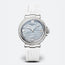 Marine Dame wristwatch in 18-carat white gold. Self-winding movement with date. Balance spring, lever and escape wheel in silicon. Bezel set with 50 diamonds, approx. 1.165ct, natural mother-of-pearl dial, hand-engraved on a rose engine with ''marea'' motif, Oscillating weight decorated with mother-of-pearl, hand-engraved on a rose engine with ''marea'' motif, set with 31 diamonds. Sapphire caseback. Water-resistant to 5 bar (50m). Diameter: 33.8mm. Also available in rose gold. Available with leather or rubber strap.