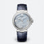 Marine Dame wristwatch in 18-carat white gold. Self-winding movement with date. Balance spring, lever and escape wheel in silicon. Bezel set with 50 diamonds, approx. 1.165ct, natural mother-of-pearl dial, hand-engraved on a rose engine with ''marea'' motif, Oscillating weight decorated with mother-of-pearl, hand-engraved on a rose engine with ''marea'' motif, set with 31 diamonds. Sapphire caseback. Water-resistant to 5 bar (50m). Diameter: 33.8mm. Also available in rose gold. Available with leather or rubber strap.