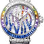 9509BB/5S/984/SD0S Breguet The Breguet Marine Haute Joaillerie 9509BB/5S/984/SD0S is an exceptional ladies' watch that is designed to be both luxurious and functional. The 18K white gold case measures 35.8 mm in diameter and is adorned with a bezel and lugs set with blue sapphires, amethysts, coloured sapphires, tsavorites, and diamonds, totaling approximately 9.97 carats. This breathtaking design makes the watch a true work of art. The watch is powered by a self-winding movement, which offers convenience and accuracy. The mother-of-pearl dial is set with 85 baguette-cut gemstones, which add to the watch's opulent look. The Breguet caliber 591C provides approximately 38 hours of power reserve, ensuring reliable and precise timekeeping. The caseback of the watch is made of sapphire, allowing the wearer to admire the intricate details of the movement. The alligator leather strap is secured with a deployant buckle, which provides a comfortable and secure fit. The watch is water-resistant up to 50 meters or 165 feet, making it suitable for swimming and snorkeling. Overall, the Breguet Marine Haute Joaillerie 9509BB/5S/984/SD0S is a stunning ladies' watch that combines exceptional design and functionality. The use of precious gemstones, including blue sapphires, amethysts, coloured sapphires, tsavorites, and diamonds, elevates the watch's beauty, while the self-winding movement and power reserve indicator add to its functionality. The watch is a testament to Breguet's reputation for producing high-end timepieces that are both beautiful and practical.
