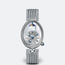 Reine de Naples wristwatch in 18-carat white gold. Bezel and dial flange set with 128 diamonds weighing approx. 0.83 ct. Self-winding movement with running seconds. Power-reserve and moon-phase indicators. Silvered gold dial, hand-engraved on a rose engine and partly in white natural mother-of-pearl. Sapphire caseback. Water-resistant to 3 bar ( 30 m ). Dimensions : 36.50 x 28.45 mm. Also in yellow gold.