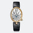 Reine de Naples wristwatch in 18-carat yellow gold. Bezel and dial flange set with 117 diamonds weighing approx. 0.99 ct. Self-winding movement. Silvered gold dial, hand-engraved on a rose engine and partly in white natural mother-of-pearl. Breguet Arabic numerals. Pear-cut diamond at 6 o'clock. Sapphire caseback. Water-resistant to 3 bar ( 30 m ). Dimensions : 36.50 x 28.45 mm. Also in rose or white gold. Available with gold bracelet.