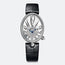 Reine de Naples wristwatch in 18-carat white gold. Bezel and dial flange set with 117 diamonds weighing approx. 0.99 ct. Self-winding movement. Silvered gold dial, hand-engraved on a rose engine and partly in white natural mother-of-pearl. Breguet Arabic numerals. Pear-cut diamond at 6 o'clock. Sapphire caseback. Water-resistant to 3 bar ( 30 m ). Dimensions : 36.50 x 28.45 mm. Also in yellow or rose gold. Available with gold bracelet.