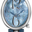 8967ST/V8/986 Breguet The Breguet Reine de Naples 8967ST/V8/986 is a ladies watch with a case size of 35.5mm x 43.75mm, made of stainless steel with a stainless steel bezel. The watch features a sky blue natural mother-of-pearl dial with Breguet Arabic numerals and blued steel "Breguet" style hands. The back of the watch is made of sapphire crystal, allowing a view of the movement inside. The watch is powered by an automatic movement, the Breguet Caliber 591C, which provides the functions of hours and minutes. The watch has a water resistance rating of up to 30 meters or 100 feet, making it suitable for light water activities such as swimming or showering. The watch comes with a blue alligator leather strap, which adds a pop of color to the watch and is secured with a folding clasp. The Breguet Reine de Naples 8967ST/V8/986 is a stylish and functional watch that combines traditional Breguet design elements with modern materials and technology. The use of Breguet Arabic numerals on the sky blue mother-of-pearl dial adds a unique and elegant touch to the watch, making it stand out from other watches in the Reine de Naples collection.