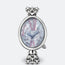 Reine de Naples wristwatch in steel. Self-winding movement. Balance spring and escapement in silicon. Natural mother-of-pearl dial with Roman numerals. Sapphire caseback. Water-resistant to 3 bar ( 30 m ). Dimensions : 43.75 x 35.50 mm.