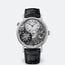 Tradition GMT wristwatch in 18-carat white gold. Hand-wound movement. Second time-zone indicator. Day/night indicator. Off-centred local time subdial in silvered gold hand-engraved on a rose engine. Black off-centred reference time subdial in gold hand-engraved on a rose engine. Power-reserve indicator on the back of the movement. Silicon balance spring with Breguet overcoil. Sapphire caseback. Water-resistant to 3 bar ( 30 m ). Diameter : 40 mm. Also in rose gold.
