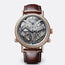 Tradition independent chronograph in 18-carat rose gold. Anthracite hand-wound movement. 20-minute counter and power reserve indicator also on the back of the movement. Chronograph running indicator at 6 o?clock. Silicon Breguet balance-springs. Off-centred dial in silvered gold, hand engraved on a rose engine. Sapphire crystal caseback. Water-resistant to 3 bar (30 m). Diameter: 44 mm. Also available in white gold.