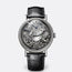 Tradition watch in 18-carat gold. Self-winding anthracite movement with retrograde seconds. Silicon Breguet balance-spring. Off-centred dial in silvered gold, engine-turned by hand. Sapphire crystal case back. Water-resistant to 3 bar (30 m). Diameter: 40 mm. Also available in rose gold.