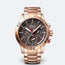 Type XXII flyback chronograph in rose gold with seconds hands on a 30-second basis at the centre. Half-minute totalizer at the centre. High-frequency escapement (10Hz ) composed of a Breguet balance wheel with timing screws, a balance spring, a lever and escape wheel in silicon. Self-winding movement with date and small seconds on a 30-second basis. 24-hour indicator and second time zone indicator. Two-way rotating and graduated bezel. Luminous hands and numerals. Screw-locked crown. Water-resistant to 10 bar ( 100 m ). Partial sapphire case back. Diameter : 44mm. Also in steel. Available on leather strap.