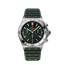 AB0134101L2S1 Breitling This watch has a 42 mm Stainless steel case. Unidirectional Stainless steel bezel with ratcheted. Green dial with three black cub-dials. Silvery applied hour markers. Silver hour hands with luminescent coating. Minute markers around the outer rim. Central second hand. The date window is located at the 6 o'clock position. This watch has three sub-dials chronograph : 60 seconds sub-dial at 9 o'clock, 30-minute sub-dial at 3 o'clock, 12-hour counter at 6 o'clock. The watch performs following functions: hours, minutes, seconds, date, chronograph. Self-winding mechanical movement is powered by a ?alibre 01 (Manufacture). 47 jewels. Power reserve approximately 70 hours. Case Thickness - 15.1 mm. Case back is transparent. Sapphire crystal protects front and back side of the watch. Green rubber strap with folding clasp buckle. This model is water-resistant up to 200 m.