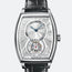 5497PT/12/9V6 Breguet The Breguet Héritage 5497PT/12/9V6 is a luxury men's watch with a platinum case and tourbillon. The case is a curved tonneau-shape and measures 42 x 35 mm. The hand-wound movement is engraved by hand and includes small seconds on the tourbillon shaft as well as a compensating balance spring with a Breguet overcoil. The silvered gold dial is intricately crafted and hand-engraved on a rose engine, adding to the watch's beauty and sophistication. The caseback is partially sapphire, allowing for a glimpse into the watch's inner workings. With water resistance up to 30 meters (100 feet), this watch is suitable for everyday wear. It also features a balance spring made of silicon, contributing to an extra-thin Classique wristwatch style. This timepiece is perfect for collectors and enthusiasts who appreciate exceptional craftsmanship and fine materials.