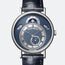 7337BB/Y5/9VU Breguet The Breguet Classique 7337BB/Y5/9VU, a stunning timepiece for watch enthusiasts who appreciate the perfect blend of traditional elegance and modern innovation. The 39mm 18K white gold case houses a self-winding movement that displays the current date, day, and phases of the moon, all while boasting a remarkable balance spring and lever made of silicon. The blue dial complements the silver-tone hands and Roman numeral hour markers, featuring a small second sub-dial at the 5 o'clock position and an off-centered chapter ring. Keep track of the weekday with the convenient window on the top left side and the date on the top right side. At 12 o'clock, the moon phase indicator and age of the moon indicator add a touch of sophistication. With a Calibre of 502.3 QSE1, beating at 21,600 vph and 35 jewels, this exquisite watch has an approximate power reserve of 45 hours. The sapphire caseback adds a luxurious touch while the blue alligator leather strap with a deployment buckle provides a comfortable fit. With water resistance for up to 30 meters or 100 feet, this watch is perfect for any occasion.