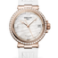 9518BR/52/584/D000 Breguet The Breguet Marine Dame 9518BR/52/584/D000 is a stunning watch that is perfect for women who appreciate luxury and exquisite design. It features a 33.8mm 18K rose gold case and bezel set with 60 diamonds, making it a perfect accessory for any occasion. Furthermore, the natural mother-of-pearl dial is hand-engraved on a rose engine with a "marea" motif, while the luminescent hour markers and markings ensure easy readability even in low light environments. The white rubber strap with a steel buckle adds comfort and durability, while the automatic movement and functions such as date, hours, minutes, and seconds make it a highly functional timepiece. The watch is water-resistant up to 50m/165ft, making it suitable for occasional water-based activities. The screw-locked crown and sapphire case back complete the overall elegance and protection of the watch. Overall, the Breguet Marine Dame 9518BR/52/584/D000 is a highly sought-after watch for women who desire a perfect blend of luxury and functionality.