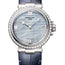 9518BB/V2/984/D000 Breguet The Breguet Marine Dame 9518BB/V2/984/D000 watch boasts a 33.8mm 18K White gold case, set with 60 dazzling diamonds, making it a luxurious timepiece for enthusiasts who value superior craftsmanship. The intricate blue handcrafted lacquered dial features luminescent hour markers and markings, adding to the watch's stunning aesthetic. The watch's automatic movement ensures accurate timekeeping, while its date, hours, minutes, and seconds functions provide convenience and practicality. With water-resistance of up to 50m/165ft, this watch is perfect for daily wear. The dark blue alligator leather strap adds sophistication to the already elegant design.