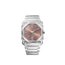 Octo Finissimo Automatic watch in satin-polished stainless steel with mechanical manufacture ultra-thin movement (2.23 mm thick), automatic winding and sun-brushed metallic salmon dial with rhodium applied stickers. Water resistant up to 100 meters.