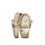 Merging two of the most iconic emblems of Bvlgari’s design, the Serpenti Tubogas single-spiral watch in 18 kt yellow gold and stainless steel embellished with diamonds coils the sinuosity of the snake with the contemporary soul of tubogas. Crafted with a flexible and tubular litheness, the timepiece evokes both the seductive power of the serpent and the fluid shape of its wrapping body, fusing irresistible glamor with distinctive jewelry design.