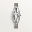 WJBA0007 Cartier The Cartier Baignoire WJBA0007 is a luxurious women's watch that features a unique oval-shaped 18K white gold case, measuring 47 mm x 21 mm, which is set with 2.67 carats of brilliant-cut diamonds on its fixed bezel. The crown is also adorned with a brilliant-cut diamond and is made of rhodiumized 18K white gold. The silver dial is made of 925/1000 silver and features Roman numerals and blued-steel sword-shaped hands. This watch has basic time functions, including hours and minutes, and is powered by a manufacture mechanical movement with manual winding, the Calibre 1917 MC. The power reserve of the watch is approximately 38 hours, and the case thickness is 8 mm. The case back is solid, and the front side is protected by a scratch-resistant sapphire crystal. The strap of the watch is made of light gray alligator leather and comes with a rhodiumized 18K white gold ardillon buckle. The water resistance of this watch is up to 30 meters or 100 feet. Overall, the Cartier Baignoire WJBA0007 is a beautiful and elegant timepiece that offers both luxury and functionality.