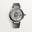 WHPA0017 Cartier The Cartier Pasha WHPA0017 is a luxury timepiece with a 41mm stainless steel case, fixed black ADLC stainless steel bezel, and fluted stainless steel crown cap and crown set with sapphires. The skeleton dial is a unique feature of this watch, with hours and minutes displayed using skeletonized bridges forming Arabic numerals and luminescent material. The gray steel diamond-shaped hands also have luminescent material for easy readability in low light conditions. The watch is powered by a self-winding mechanical movement, Calibre 9624 MC, consisting of 172 parts including 28 rubies. The movement has a diameter of 31.05mm and a thickness of 5.66mm, with a balance of 28,800 vibrations per hour and a power reserve of approximately 48 hours. The case back is transparent, allowing a view of the intricate movement. The watch comes with two interchangeable straps in black and dark gray alligator leather, both of which can be easily switched using the QuickSwitch system. The steel deployant buckle ensures a secure and comfortable fit. The watch is water-resistant up to 30 meters, making it suitable for everyday wear but not for swimming or diving. Overall, the Cartier Pasha WHPA0017 is a stunning luxury timepiece with a unique skeleton dial and impressive mechanical movement, perfect for watch enthusiasts and collectors alike.