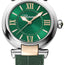 388563-6015 Chopard The Chopard Imperiale 388563-6015 watch is a luxurious and stylish timepiece. Featuring a polished 29mm stainless steel case with rose gold center lugs and a green leather strap, this watch is sure to turn heads. The fixed silver-tone stainless steel bezel and green dial with rose gold-tone hands and Roman numeral hour markers make for a striking contrast. The watch has an automatic movement and scratch-resistant sapphire crystal, ensuring accurate timekeeping and durability. With a transparent see-through case back and a round case shape of 29mm, the Imperiale series watch is a must-have for anyone who appreciates high-quality luxury watches.