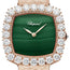 10A386-5111 Chopard. The Chopard L’Heure Du Diamant 10A386-5111 is a stunning women's watch with an ethical 18-K Rose gold case that measures 30.50 x 30.50 mm. The watch's fixed bezel is also made of 18-K Rose gold and diamonds, with 24 prong-set brilliant cut diamonds weighing approximately 4.40 carats. The crown of the watch is set with a briolette diamond that weighs approximately 0.04 carats, adding to its luxurious appearance. The dial is made of Malachite and features polished hands, with the Chopard logo positioned below the 12 o'clock marker. The watch performs only the functions of hours and minutes, using a self-winding mechanical movement powered by a Chopard calibre 09.01-c and containing 27 jewels. It also features a scratch-resistant sapphire crystal and a transparent case back, which allows you to see the intricate workings of the watch. The watch has a power reserve of approximately 42 hours and comes with an ethical Rose Gold bracelet and folding clasp buckle that complements its design. It is also water-resistant up to 30 meters / 100 feet, making it suitable for everyday wear. Overall, the Chopard L’Heure Du Diamant 10A386-5111 is an elegant and luxurious timepiece that is perfect for a woman who appreciates fine craftsmanship and a timeless design. The Malachite dial adds a unique touch of sophistication to the watch's appearance, making it stand out from other luxury watches.