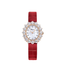 13A393-5106 Chopard This Watch comes with 30 mm 18k rose gold case. Fixed 18k rose gold bezel set with diamonds. The total weight of the gems is 4.81 carats. Textured mother-of-pearl dial. 12 diamond hour markers (0.06 ct). Rose gold leaf-shaped hour hands. The watch performs following functions: hours, minutes. Hand-wound mechanical movement. 18 Jewels. Case back is solid. Sapphire crystal protects front side of the watch. Red alligator leather strap with rose gold pin buckle. This model is water-resistant up to 30 m.