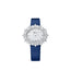 13A390-1100 Chopard The Chopard L'heure Du Diamant 13A390-1100 is a luxurious ladies' watch that combines Swiss watchmaking with exceptional craftsmanship. This exquisite timepiece features a 36 mm oval-shaped case, made of ethical white gold, and is adorned with classically cut diamonds to give it an unparalleled refinement and luxurious look. Admire the gorgeous mother-of-pearl dial, which is elegantly decorated with beautiful diamonds, adding an extra layer of beauty to this masterpiece. The watch comes equipped with an automatic movement, ensuring accuracy and reliability, making it the ideal option for watch enthusiasts who value exceptional functionality as well as luxury. The watch features functions such as hours and minutes and comes with a screw-down crown and a folding clasp that ensures it stays safely on your wrist. The blue crocodile leather strap adds the perfect finishing touch to the overall design. With its luxury watch style, exceptional design, and ethical white gold production, the Chopard L'heure Du Diamant 13A390-1100 is the perfect watch for any special occasion. This timepiece is water-resistant up to 30 meters / 100 feet, ensuring your watch stays safe even when you're caught in the rain.
