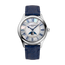 The Classics Elegance Luna features a moon evocative of romance and intimacy: two half-moons embrace amid a mother-of-pearl dial housed in a 36mm steel case. Powered by the automatic FC-331 caliber with a 38-hour power reserve, it features a jewel-set minute track, for a total of 56 diamonds (0.7 carats), and Roman numeral hour markers matching the timepiece’s leather strap.